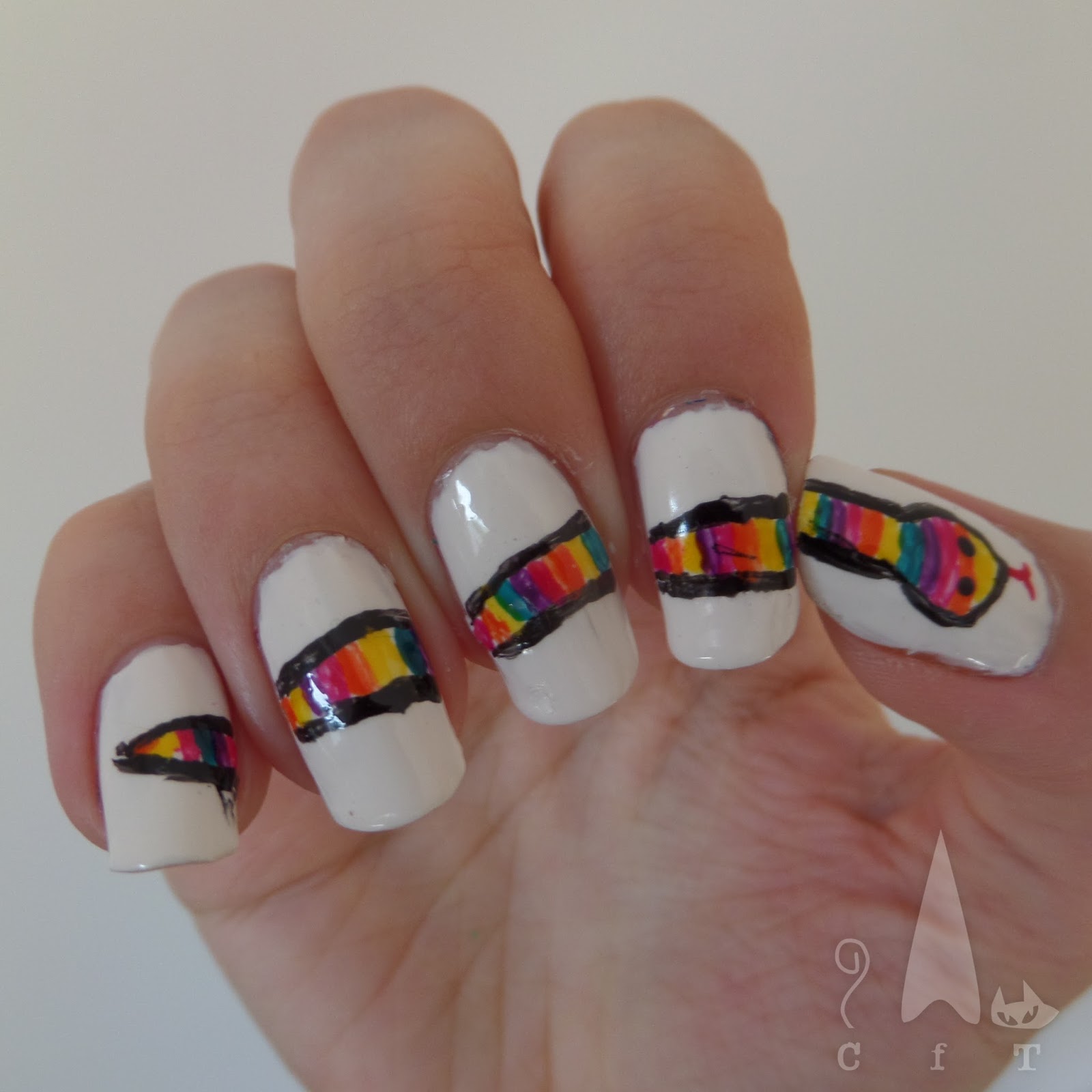 I started with a base of Cosmic Girl from Danglefoot polish, I've included a picture below though I found it hard to capture all the lovely sparkles, hence the weird lighting! Next I painted on a layer of Pen & Pink from OPI's color paints collection. It was very bright at this stage! I painted on the strawberry seeds with white, and then thought they looked too bright so out another layer of pink over the top. I do quite like the subtle effect this left. It's just about a pond mani! Finally I painted on the leaves in white, and then dabbed on some green for a mottled leafy effect.
