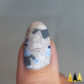 I started with a base of lilac and pale pink glitter (colours listed below the pictures). I made decals on my Uber Mat using a fairy lights image from Uber Chic's Holiday Spirit stamping plate and trees image from Mo You London's Noel 08 plate. While these were drying I painted on the little white seals and some snowflakes from the Uber Chic plate. I don't think I got the placement of the features quite right but they still look like cute little seals! I also painted on some basic snowdrops on my ring fingernail. I then added the trees decal followed by the lights before a glossy top coat.